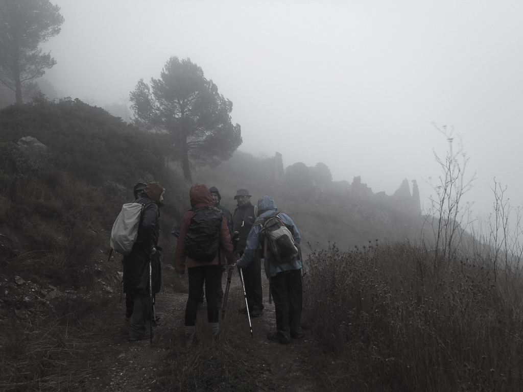 Després d’un esmorzar lent i semblava que dubitatiu, amb mandra de començar la ruta per causa de la pluja que queia, ens hem protegit i sortit a mullar-nos els nou participants. He notat a faltar pantalons impermeables (que haig de comprar), una capelina més llarga que la que tinc i mitjons de recanvi!