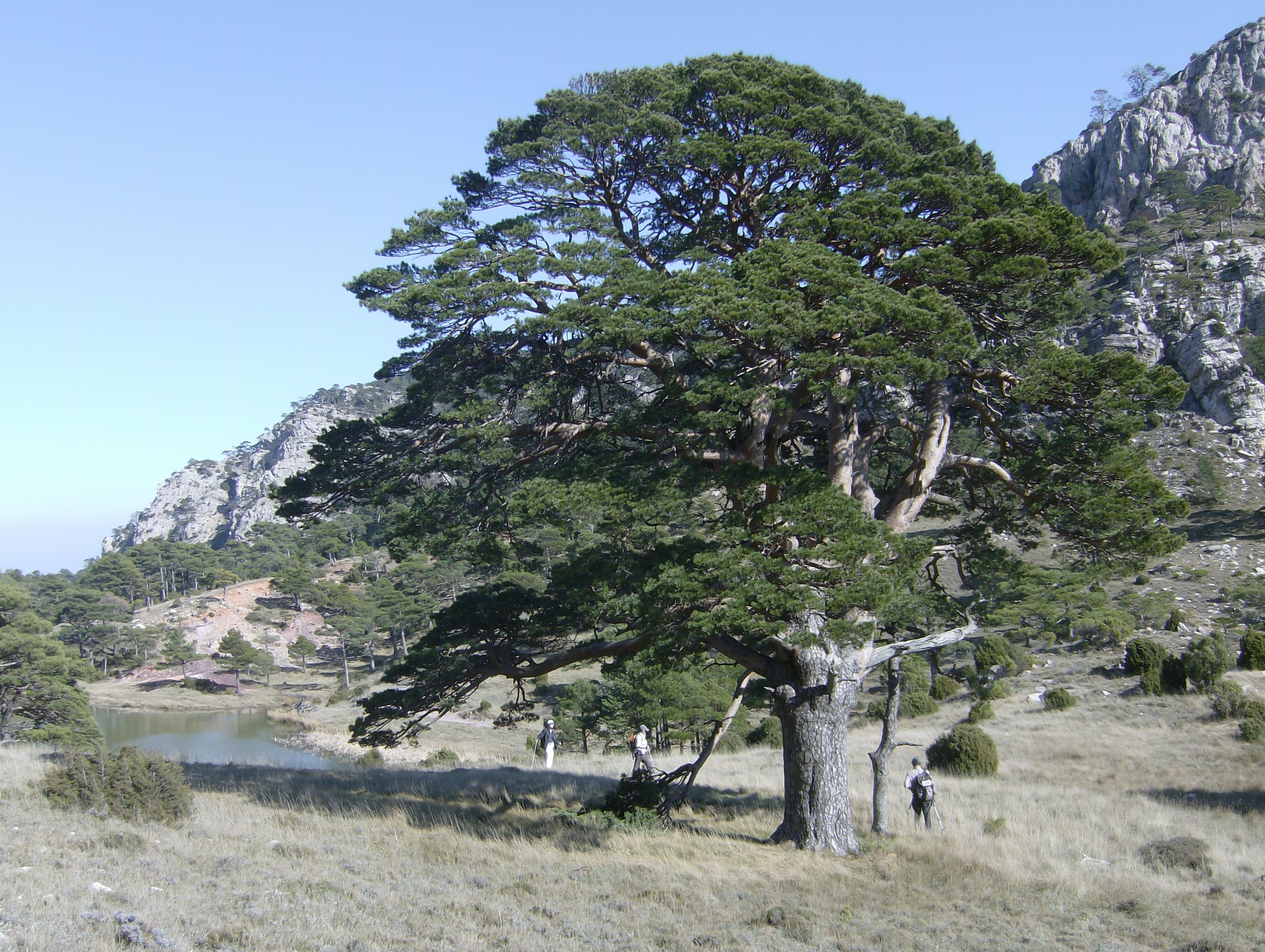 Còmoda baixada per pista fins a la bassa de Coll Roig i el seu pi
