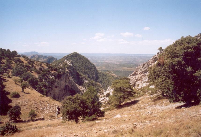 Agradable corriol fins a les Fonts del Montsagre de Paüls i molt exigent corriol pedregós de baixada pel Barranc de Montsagre, d’imponent i salvatge bellesa.