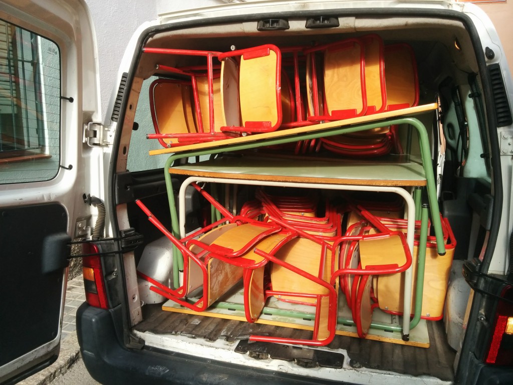 Gracias al donativo de casi 100 sillas y 30 mesas de la Escuela IE Sant Jordi de Vilassar de Dalt, para niños de infantil; que vamos a enviar en Gambia para la Escuela de Alkalikunda, en Upper Baddibu. Los beneficiarios estaran muy contentos pués ahora se sientan en bidones de plástico.